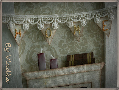 Another weekend and of course, time for another Just Us Girls challenge :-) Dana is challenging us with the pennant banner this time. I don't have the place for the big one, so I made the smaller one :-). It is hanging above the fireplace. This is one more creation from my 'Home sweet home collections' and this one actually stays at home, jupijej (you can find the previous collections here and here)Sveče sem dejansko polila z voskom, da delujejo bolj realno :-)